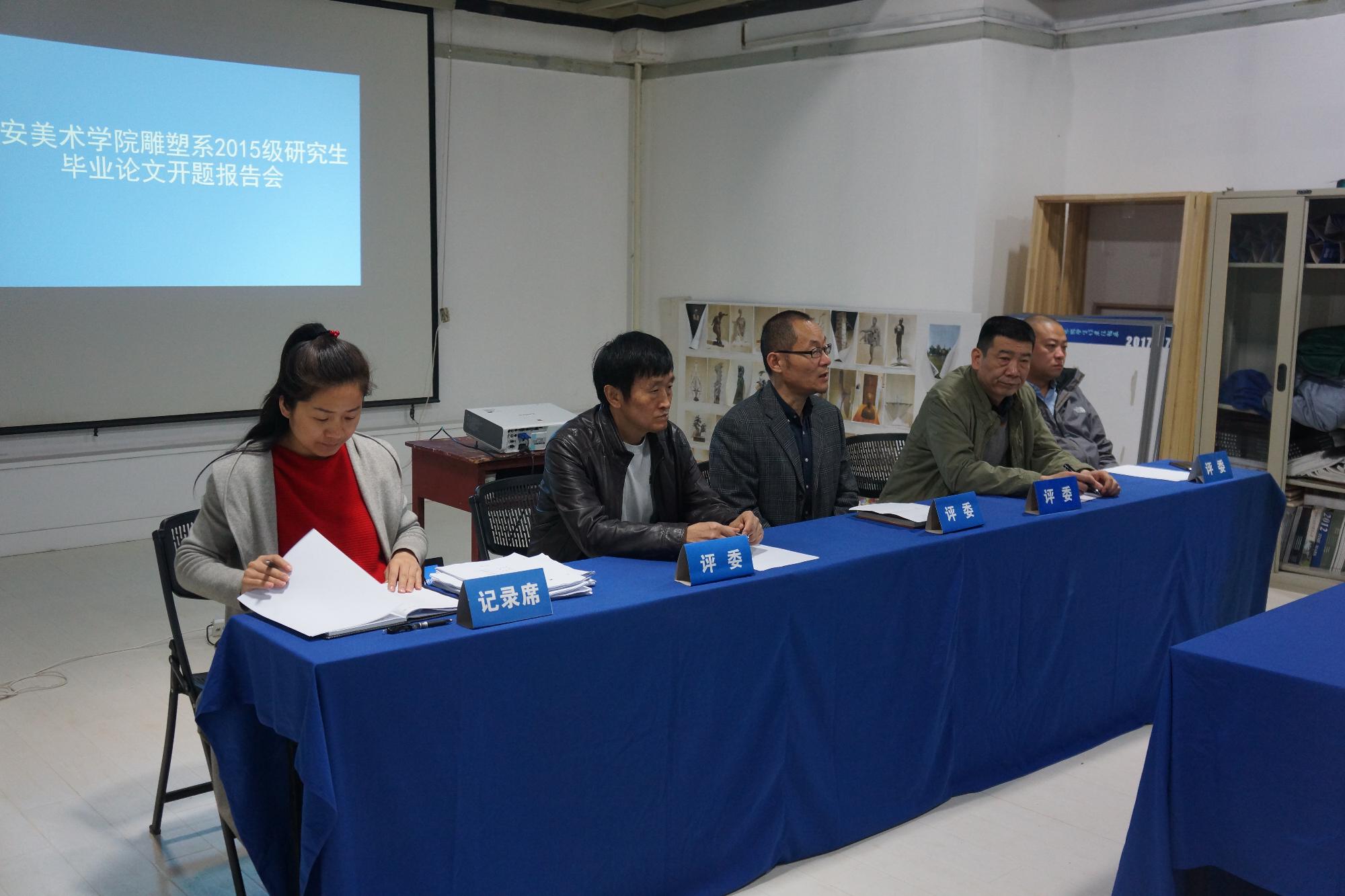 2017年4月7日,雕塑系召开了2018届研究生论文开题报告会。报告会就每位研究生的论文开题报告进行了全面深入的论证和审议,有针对性地提出了具体的修改意见。此次开题报告会根据研究生培养方案、大纲,对本届研究生的论文撰写、实地考察、论文资料搜集准备等各方面提出了明确的要求。