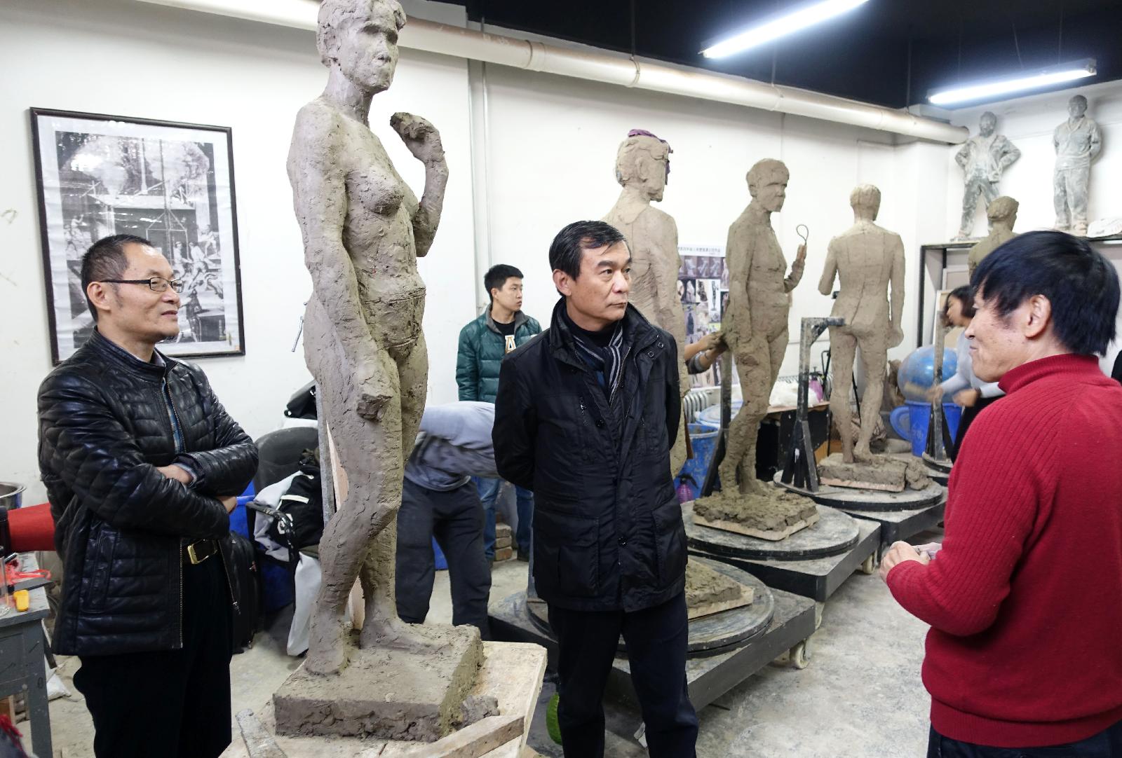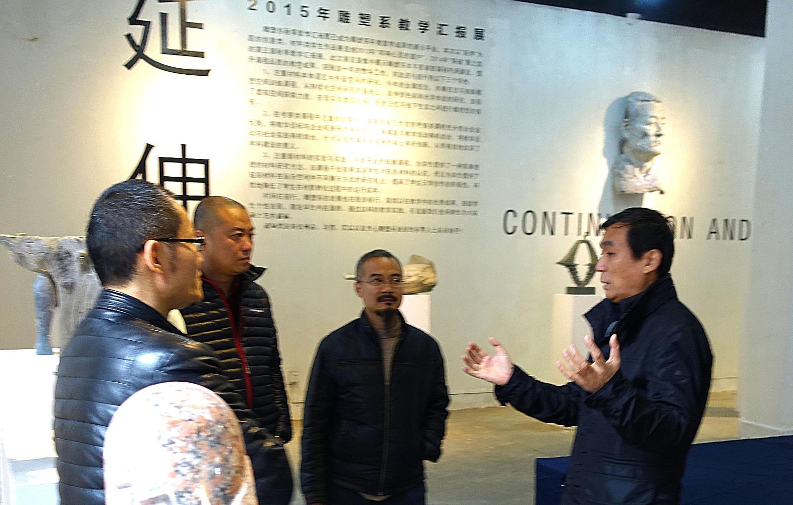 11月25日上午,郭线庐院长到雕塑系调研工作,在教室课堂上察看了解课程运行情况,并参观了雕塑系秋季教学汇报展。郭院长听取雕塑系班子对于目前教学等工作的汇报之后,提出三点希望:第一、当代社会发展给我们带来了新的、更高的要求,希望我们能够积极参加社会艺术项目,并体现自身的专业实力和独特的造型语言特征,并以此来促进教学的发展。第二、充分利用我们地区丰富的传统文化资源、民间艺术资源,保持民族特性和自身艺术特点。第三、雕塑语言在新材料科技和跨学科的发展下,给雕塑语言形式的发展带来了很多可能性,在课堂设置上要适应这一形式的变化,要保持雕塑系这两年大胆探索的势头,在当代艺术领域中勇于创新。